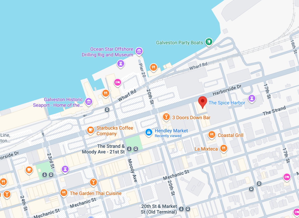 I began a thorough investigation of the life of Albert Parsons when he was 11-years old and went to work as a Printer’s Devil on Galveston Island, Texas. In looking at the location of the newspaper office he worked at as a child laborer, there’s a place right by it called THE SPICE HARBOR. This is Albert’s block during his formative years.